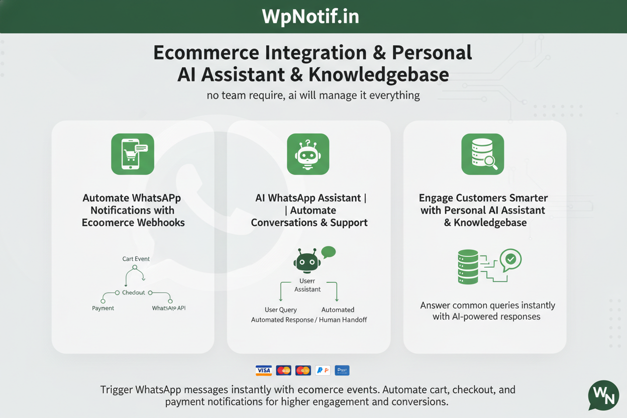 Trigger WhatsApp messages instantly with ecommerce events. Automate cart, checkout, and payment notifications for higher engagement and conversions.
